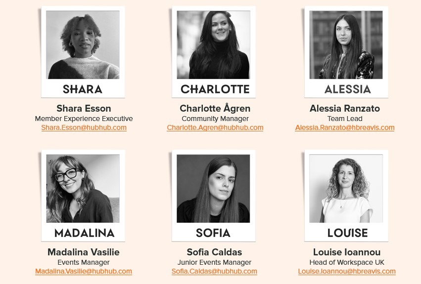 On the community side, we have Charlotte, our Community Manager, who recently joined and works alongside Shara, our Member Experience Executive. Together, they’re here to make sure your time at HubHub is as comfortable, enjoyable and fun as possible.